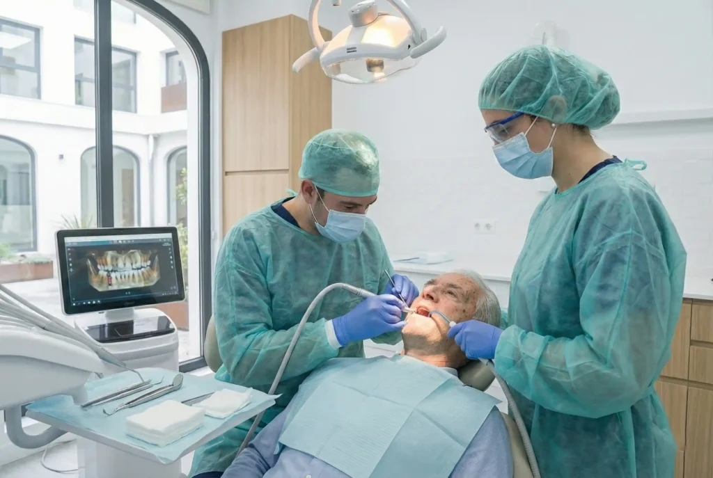 El implante se coloca mediante un procedimiento seguro y controlado, actuando como raíz artificial del nuevo diente.
