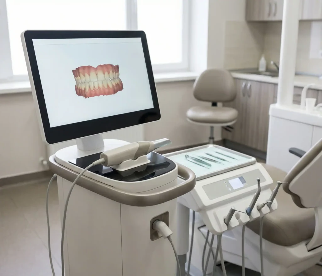 El escáner intraoral elimina las impresiones tradicionales, haciendo el proceso más rápido y confortable.